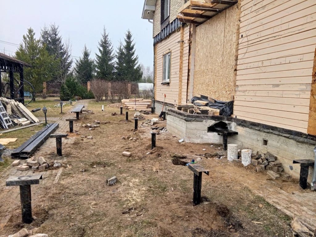 Специалисты компании Сваекрутов успешно завершили очередной проект в Клинском районе. В деревне Татищево перед нами стояла интересная инженерная задача: подготовить надежную опору для будущей стеклянной веранды. Заказчик поставил задачу - создать просторную оранжерею вдоль одной из стен дома, где планируется круглогодичное выращивание растений. Такое сооружение требует особой стабильности, так как панорамное остекление крайне чувствительно к любым перекосам или усадкам грунта.