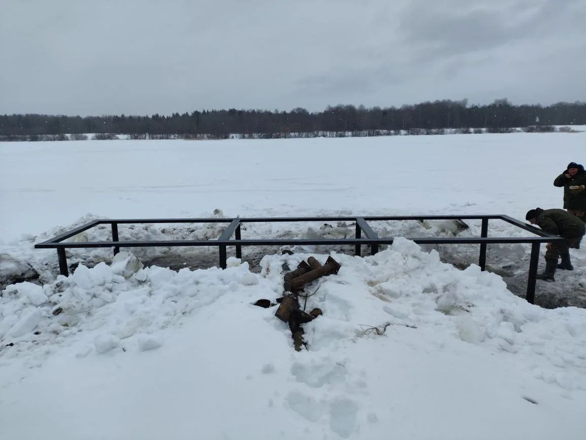 Процесс монтажа начался с точной разметки ледяного зеркала под габариты будущего объекта. Общая длина пирса составила 8 метров при ширине 2 метра. Каждое технологическое отверстие во льду подготавливалось с учетом проектных осей. Погружение 5 метровых стальных опор производилось на расчетную глубину, пока каждая свая не достигла необходимого крутящего момента, подтверждающего ее несущую способность.