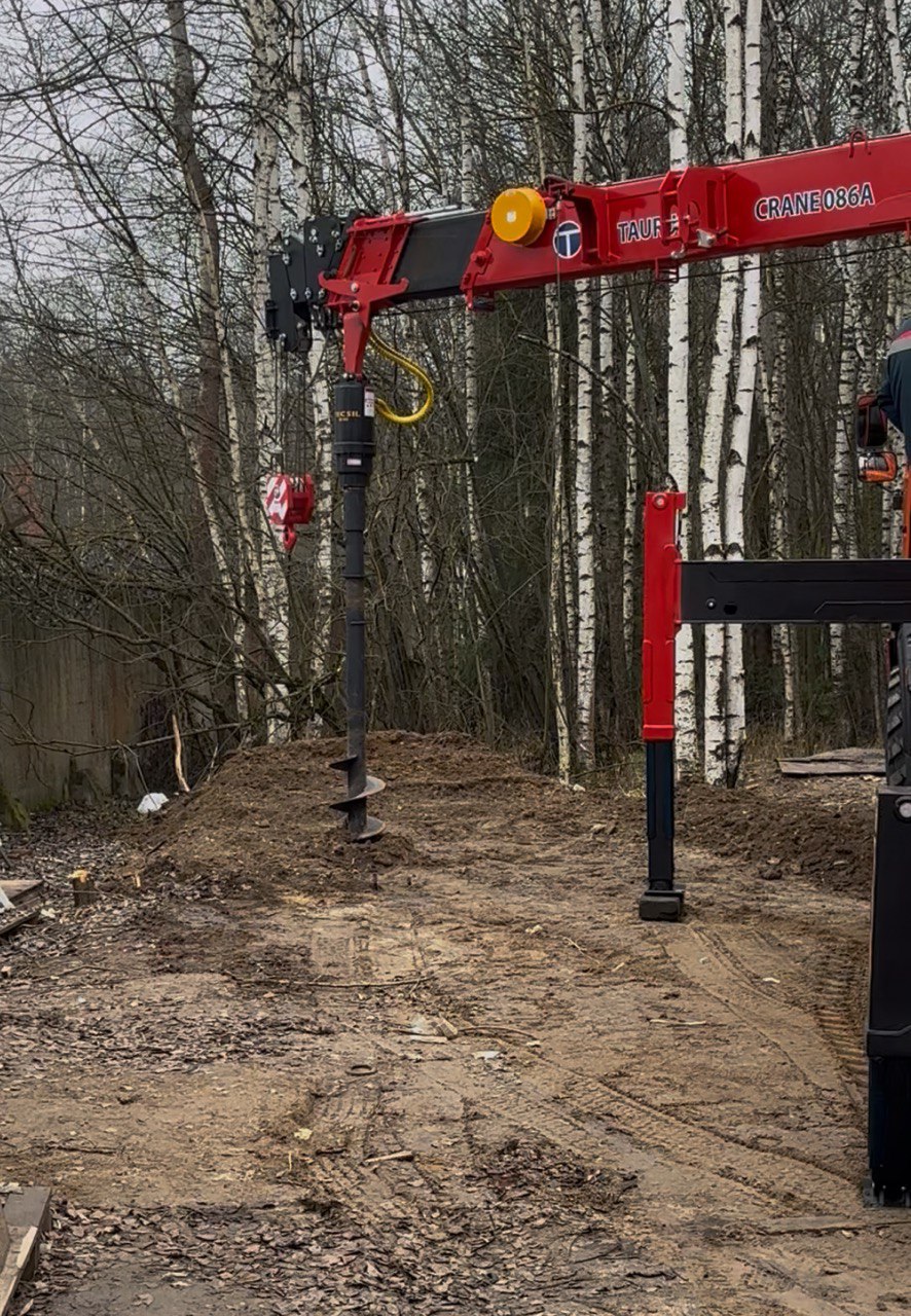 —Монтаж винтовых свай спецтехникой в труднодоступных местах в Луховицах